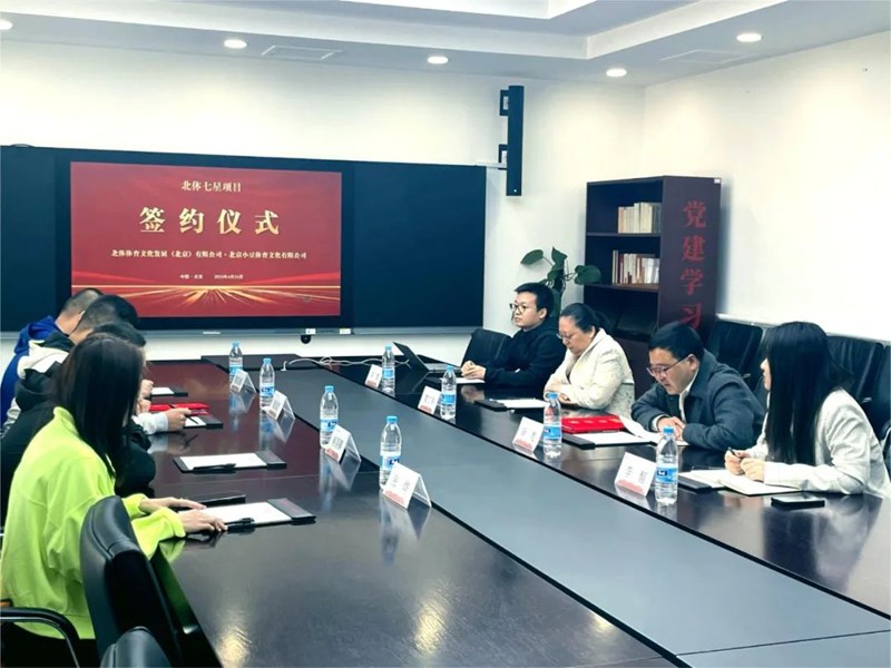 本次签约在北体产业集团会议室举行,北体体育文化发展(北京)有限公司董事长廖立华、副总经理耿彪、项目负责人李醒、刘波;小豆体育创始人童安定、教学总监何羽卿、主教练郭东炜、运营经理张烨出席签约仪式。