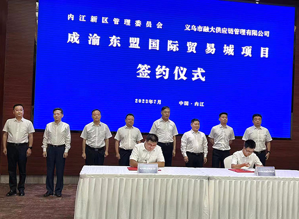 中经网-中经在线四川内江讯:7月21日,成渝东盟国际贸易城项目签约仪式在内江举行,项目落户于内江新区,投资10亿元。这是四川省内江市深入贯彻落实省委十二届三次全会和市委八届六次全会精神,加快建设现代化产业体系的具体行动和重要成果。内江市委书记邹自景出席签约仪式并见证签约。