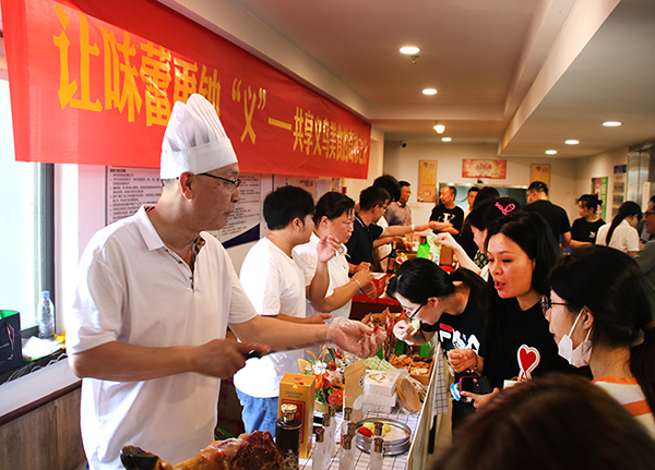 中经网-中经在线杭州讯:义乌,这个世界著名的小商品之都,以其琳琅满目的商品和独特的商业氛围而闻名。然而,除了丰富多样的小商品外,义乌还以其令人垂涎欲滴的地方特色美食而备受赞誉。为进一步展示义乌特色美食推广义乌特色产品,日前,由义乌市政府主办的让味蕾更钟“义”——共享义乌美食的奇妙之旅,在浙江省商务厅食堂成功举办。义乌市市场发展委牵头组织,带领银都厨师团队在后厨打开“义乌十碗”通道的同时,召集了几家义乌特色知名企业:浙江华统肉制品股份有限公司、义乌商城集团、义乌市场集团、大陈小集、九都酒业、张大酥等在前厅开启产品品鉴、售卖等活动。首日大受欢迎,纷纷表示后续两天都会前来品尝采购。