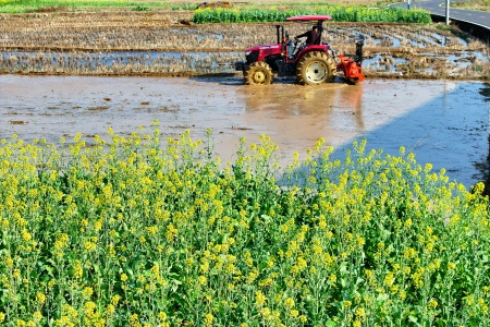 图:农户忙着整田、育秧。 尹子昂摄