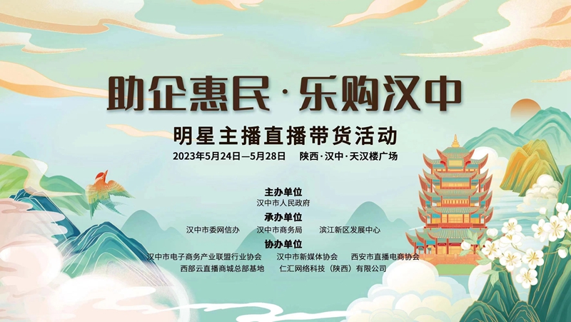 中经网·中经在线陕西汉中讯:为积极贯彻落实中央和陕西省促消费、稳增长工作部署,进一步促进消费回升和潜力释放,拓宽汉中市优质网销产品品牌,由汉中市人民政府主办,中共汉中市委网信办、汉中市商务局、滨江新区发展服务中心承办、汉中市电子商务产业联盟行业协会、汉中市新媒体协会、西安市直播电商协会、西部云直播商城总基地、仁汇网络科技(陕西)有限公司协办,并邀请了“木森”“红豆”“建博”等多名网红主播来汉中开展“助企惠民.乐购汉中”明星主播带货活动同时也诚邀汉中地区有才艺主播共同参与宣传汉中。