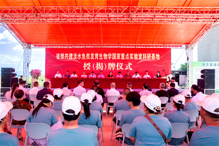 图:“省部共建淡水鱼类发育生物学国家重点实验室科研基地”授(揭)牌仪式举行。 杨波 摄