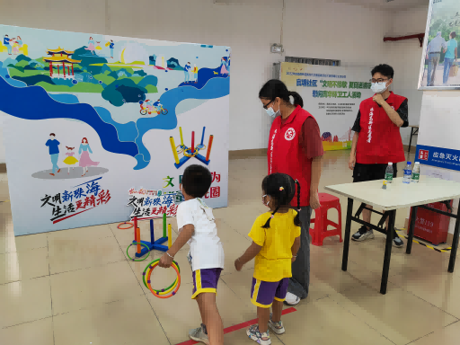 活动现场包含趣味投壶、玉兔套圈、传统文化灯谜、“垃圾分类侠”等好玩、刺激的游戏环节,在大学生志愿者的帮助下,亲子家庭共话中秋团圆,成为中华优秀传统文化的传播者、学习者和受益者。