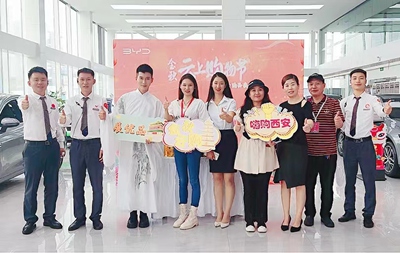 中经网讯:10月1日国庆当天早十点,由西安市商务局主办,各区县商贸系统支持,陕西智信盈科会展服务有限公司,举办的“西安2022年促销费系列活动—金秋云上购物节”“乐享生活•嗨购西安”第三站---“迪”享生活展品质,在比亚迪汽车海洋网(西安新景腾飞4S店)火热进行。