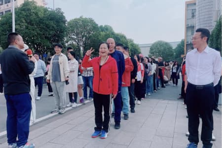 “夹纸顶杯接力”比赛中,各组老师依次站成一列,两腿夹书,头顶纸杯,全神贯注地等待比赛开始。哨声响起,他们便小心翼翼地行动起来,所有老师都努力夹紧书本,谨慎地挪动脚步,唯恐纸杯掉落。到达终点后,迅速拿着纸杯和书本跑回起点,传递给下一位队友。整个过程紧张刺激,吸引了众多师生围观喝彩。