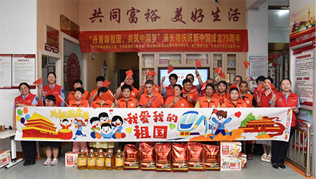 中经总网·中经在线浙江温州讯 随着国庆佳节的临近,在温州市平阳县委社工部、平阳县残疾人联合会精心指导下,平阳县乐创社会服务中心党支部联合甬台温高速萧江收费所、平阳收费隧道所、萧江海棠艺校,在萧江镇乐创残疾人之家共富工坊共同举办了一场别开生面的“丹青颂祖国,共筑中国梦”画长卷活动。此次活动以艺术创作的方式彰显党建共融的社会愿景,热烈庆祝新中国成立75周年,展示了残障朋友们对祖国的热爱和对美好生活的向往。