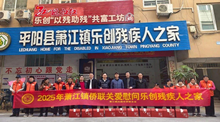 中经总网·中经在线浙江温州讯 随着春节脚步的渐近,温州市平阳县萧江镇乐创残疾人之家也弥漫着浓浓的暖意。在这寒冷的季节里,温州市平阳县萧江侨联的慰问团队如春风化雨,为这里的生活注入了无尽的关怀与希望。