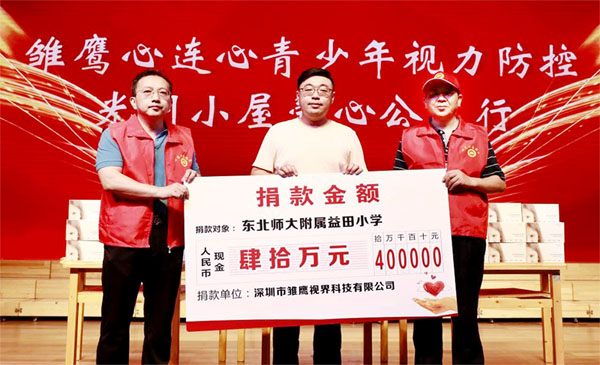 中经网讯 近日,“雏鹰心连心青少年视力防控光明小屋爱心公益行”活动在东北师大附属益田小学举行。本次活动由益田小学主办,深圳心连心志愿者协会协办,雏鹰视界赞助。三方就未来在公益慈善、大力弘扬志愿精神、进一步深入学校有效推进儿童青少年近视防控和科学矫治工作等多方面内容达成战略合作。深圳市心连心协会会长韩一飞、雏鹰视界联合创始人文即予、黄小球及公益项目负责人伍俊先、益田小学副校长李懿轩共同出席本次活动。期间,伍俊先代表雏鹰50°向学校捐助价值40万雏鹰50°近视防控产品。