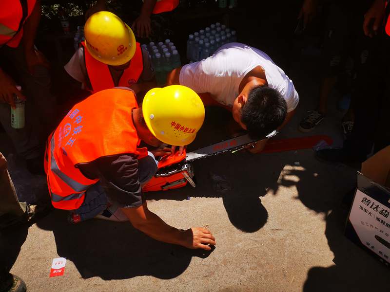 在现场,消防队员言简意赅地传达了抢险重点要点,普及了抢险的危险事项与预防措施,项目抢险救援小组结合项目防火应急方案,调集多台挖掘机及运输车辆,携带油锯、镰刀、砍刀、铁锹等百余台套设备工具,赶赴山火救援一线。此时重庆气温高达43摄氏度,山间因火情,温度更逾50摄氏度,抢险救援小组扛住高温徒步上山,至近火点处开辟防火隔离带,清理树木、竹林及杂草,构筑起防火屏障,防止火势继续蔓延。为加快扑灭山火速度,最大限度保护当地森林资源,救援人员、机械通力合作,经过7个小时的努力,于24日凌晨抢出一条百米宽的防火隔离带。