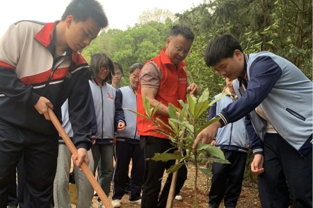 中经总网·中经在线湖南衡阳讯(张星兴 通讯员:万庆华)春风和煦,万物萌发。为深化党员先锋模范作用,厚植绿色发展理念,强化全民国家安全意识,4月12日,衡阳市第五中学党委携手民盟衡阳市五中支部、民进衡阳市五中支部及“珍珠生”学生代表、师生志愿者等50余人,共同奔赴衡南县十牛峰,开展“‘大手牵小手 爱心护绿行’义务植树公益活动”暨“全民国家安全教育 走深走实十周年”主题党日活动。
