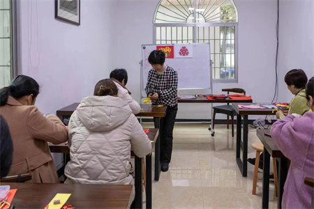 活动现场,非遗剪纸传承人廖哲定结合清明节特点,介绍了菊花与清明节的渊源,并以学习、创作菊花剪纸作品为题,从学画菊花剪纸图样开始,向大家传授剪纸作品操作要点。