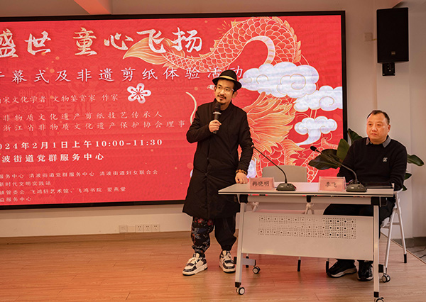 中经总网-中经在线杭州讯(卢国良 陈静)2月1日上午10点,南宋文化学者、文物鉴赏家李飞与非物质文化遗产剪纸技艺传承人韩晓明联合举办的《龙腾盛世》主题展,在杭州西湖南山路清波街道党群服务中心开展,展览将持续到2月18日结束。