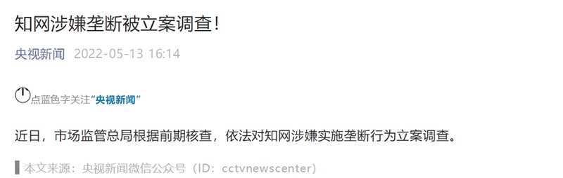 中国经济报道 综合自央视新闻:近日,市场监管总局根据前期核查,依法对知网涉嫌实施垄断行为立案调查。