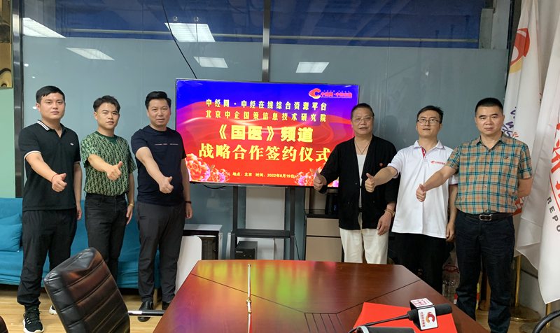 讲好中医故事,助力中医药文化传播!2022年8月19日,中国民族卫生协会健康养生分会常务副会长兼常务副秘书长、中国医药新闻信息协会中医药文化分会常务副会长、北京中企国策信息技术研究院院长周文一行专程到访中经网·中经在线总部,与中经网·中经在线执行总裁、北京各省市驻京机构商务协会副会长兼宣传部部长、京忠智库融媒体专委会执行会长熊辉、中经网·中经在线执行总编王海珠进行深入座谈交流,双方达成战略合作,将重点打造以讲好中医故事、传播中医药文化、弘扬国医国粹为服务理念的《国医》频道融媒平台,联动各方面资源,聚合全行业力量,共建产业智库平台。中经网·中经在线《美丽乡村》频道常务副主任、家和乡墅科技产业发展有限公司创始人朱小峰、中经网·中经在线影视中心主任康玉洁见证了频道签约仪式。