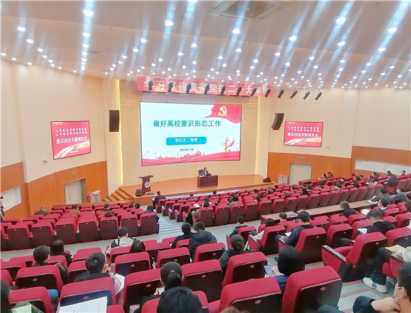 中经网·中经在线讯:为深入学习宣传贯彻党的二十大精神,加强新形势下高校意识形态建设,11月9日下午,辽宁经济管理干部学院(辽宁经济职业技术学院)举行意识形态专题报告会,邀请北方国防教育网总编辑张红太教授作意识形态专题报告《做好高校意识形态工作》,学校副处级以上干部、全体辅导员参加听课。