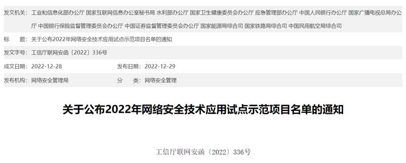 关于公布2022年网络安全技术应用试点示范项目名单的通知