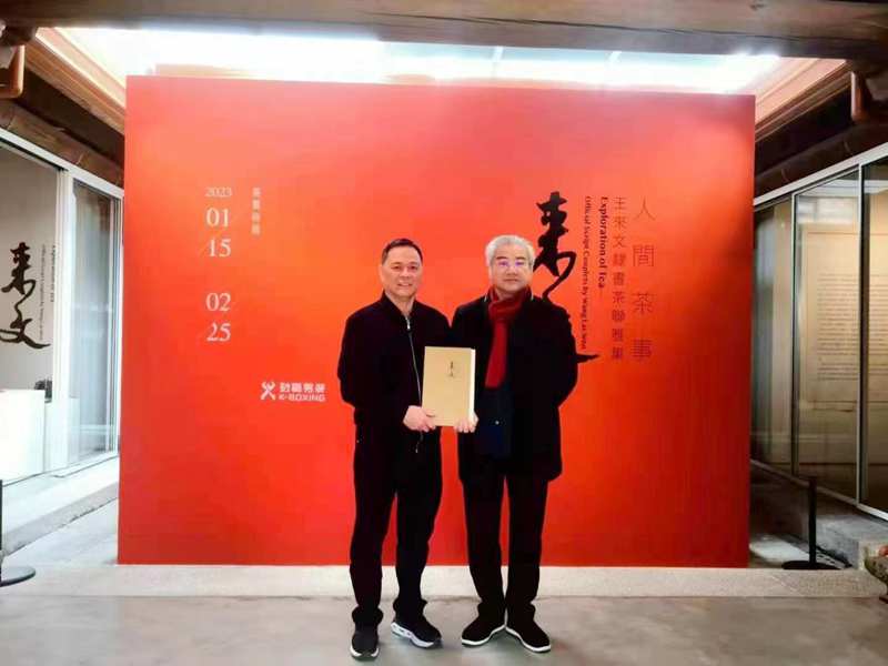 2023年1月15日,福建省美术家协会主席王来文老师的第一场书写中国传统茶文化的书法作品展,在泉州晋江五店市老街区盒止美术馆举办,他将此展主题取为“人间茶事——王来文隶书茶联雅集”。迎接癸卯兔年新春的到来,“观茶联过大年·文化进万家”。在传统节日里王来文主席书写作品,并放在最基层的晋江街区展出是非常有意义的,将文艺工作走进基层走进人民群众中来。将茶对联蕴含的精神特质、文化内涵,让人民群众在春节传统节日中可感知、可欣赏、可参与,让群众在多彩的年俗活动中领略中华茶文化的魅力,感受传统年味儿的同时,感受中华传统书法艺术的魅力,中华茶文化的魅力。雅集不做开幕式、不收花篮、不搞剪彩,连展名都索性隐去“展”字,只当是寻常生活中,办一场节日的文艺雅集,与同好之人一同赏字、喝茶,顺便在岁末年初给来的客,写写春联,共贺新春。作为画坛名家,王来文老师不仅擅长写意花鸟,近年更是以白描艺术独步画坛,他以隶法入画,笔墨洗练,清雅悠远,这与他40年来对书艺不曾有一日懈怠练就的功力不无关联。他书写内容从唐诗宋词,写到诗经离骚,但在他看来,写的最多最畅意的却是对联。本次展出的作品,为王来文2021年间为主书写的51对隶书茶联,以茶为引子,以笔墨表达温润的日常,在茶香与墨香中,啓幕新的一年。
