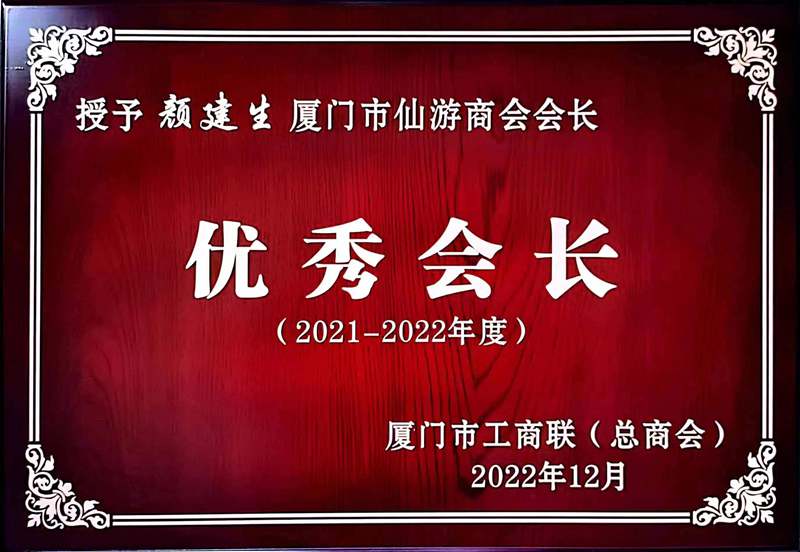 近三年来,厦门仙游商会善心善行取得的成绩,受到厦门、仙游两地相关部门以及全国工商联的肯定。由此,颜建生当选为仙游县政协常委,以及新一届厦门市工商联(总商会)副会长。颜建生于2023年2月,接受2021-2022年度全国四好商会和厦门市工商联2021-2022年度优秀会长荣誉表彰。抚今追昔守初心 ,鉴往知来踏征程,颜建生始终保持清醒的头脑,踔厉奋发笃行不怠。雄关漫道真如铁,而今迈步从头越。目前,颜建生和商会的会员们携手并进,建功新时代奋进新征程,为深入弘扬嘉庚精神做出新的贡献。