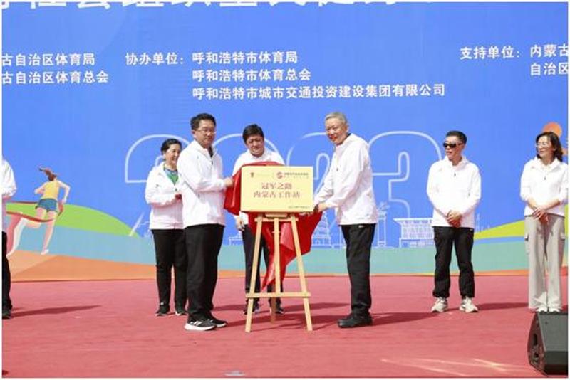 内蒙古自治区体育局党组书记王征宇、副局长张志、体育总会秘书长刘贵生等领导出席启动仪式。国家体育总局自行车击剑运动管理中心原党组书记、中国铁人三项协会原主席、冠军之路全国组委会主任王宣庆和自治区体育局副局长张志为“冠军之路”内蒙古工作站揭牌。