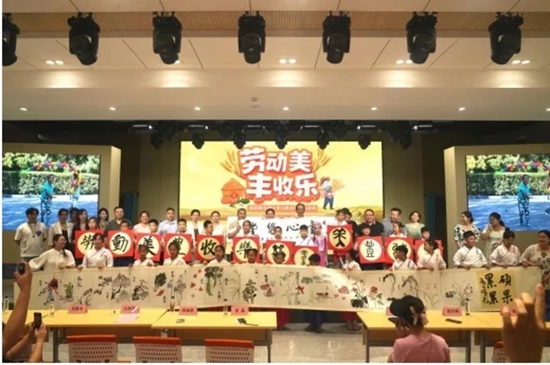 新闻发布会现场,伴随着孩子们欢快的舞蹈,12名学生现场书写“劳动美·丰收乐”,12名小画家现场绘制一幅9.23米长卷作品,气势恢弘,一气呵成,与会专家领导与孩子们合影留念,共同祝福活动顺利开展、取得累累硕果。