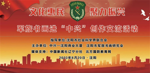 中经总网·中经在线讯:为深入学习贯彻党的二十大精神,深化主题教育开展,积极响应沈阳市“振兴新突破,我要当先锋”专项行动号召,深入开展文化惠民和兴企助企活动,为沈阳市文化建设和营商环境建设注入活力。8月20日,由沈阳市社科联作为指导单位,中兴——沈阳商业大厦、沈阳军旅书画研究会主办,中国新闻社辽宁分社、北方国防教育网作为媒体支持单位,开展的“文化惠民 聚力振兴”军旅书画进“中兴”创作交流活动,在中兴——沈阳商业大厦举行。