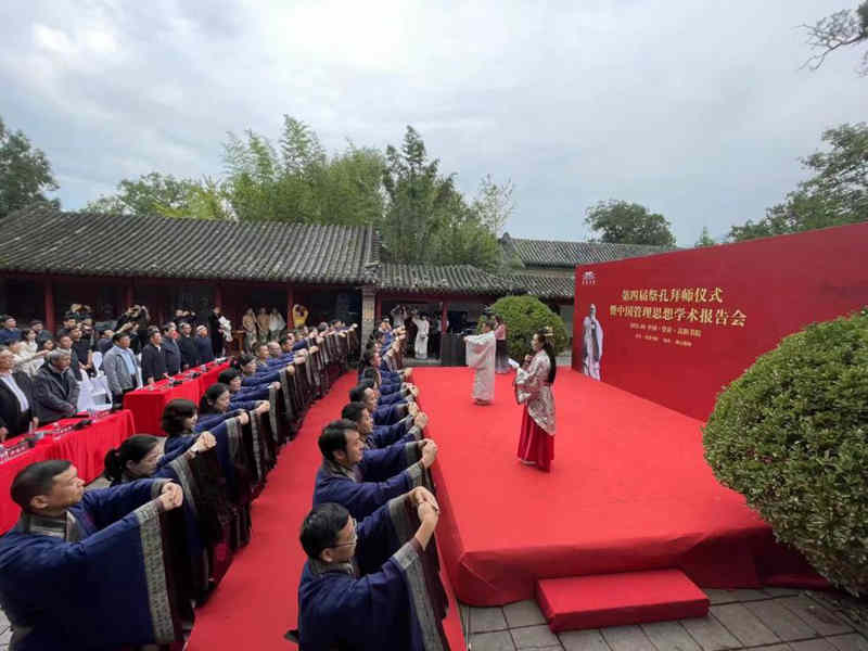 中经总网·中经在线郑州讯:2023年9月28日是孔子诞辰2574年纪念日。当日以“仁学正道至圣先师 赓续鼎新引领世界”为主题的“第四届祭孔拜师仪式暨中国管理思想学术报告会”在嵩阳书院隆重举办,各界来宾群贤汇聚,薪火传承,共同见证祭孔拜师仪式,全体人员向先师孔子像行礼,一俯一仰之间传承千年文化,一鞠一躬之间缅怀万世师表。