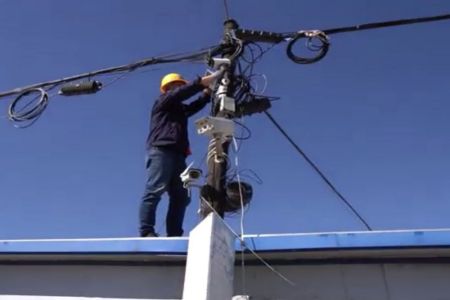 (图2:网络建设人员安装高清摄像头)