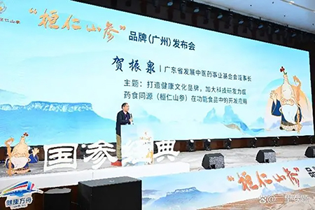 会议品牌宣推发布环节亮点纷呈。辽宁省人民政府驻广州办事处主任关涛、桓仁满族自治县县委副书记、县长田永军、广东省营养健康产业协会会长张咏、广州国际医药港集团执行总裁陈琼新、中国商协会服务工作委员会主任王棡、广东省养生协会医养大健康分会会长张小冬、广东省发展中医药事业基金会理事长贺振泉、广东长征文化促进会会长李晓东登台,共同启动了桓仁山参IP形象。与会人员亲眼见证了桓仁山参品牌IP形象标识——长寿参翁的正式发布,了解了桓仁山参品牌IP形象故事、桓仁山参LOGO形象和桓仁山参品牌内涵。并借助媒体矩阵向国内外全面、系统的展示了桓仁山参的品牌形象。