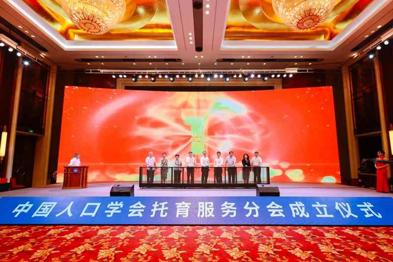 在启动仪式环节,国家卫生健康委党组成员、副主任于学军,国家卫生健康委人口家庭司司长杨文庄,山西省卫生健康委党组书记、主任张波,中国人口学会副会长杜鹏,中国人口学会托育服务分会理事长闫宏以及中国人口学会托育服务分会副理事长李敬、胡紫岚、张彤、赵明武等人上台共同启动成立中国人口学会托育服务分会,见证中国托育服务发展的重要“里程碑”。
