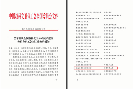 中经总网·中经在线海口讯(闫晓亮)为大力弘扬劳模精神、劳动精神、工匠精神,激励教科文卫体系统广大劳模、工匠、名师、名医、名家等优秀人才充分发挥示范引领作用,团结动员职工群众积极投身大众创业、万众创新,助推教科文卫体事业高质量发展,中国教科文卫体工会决定选树一批全国教科文卫体系统示范性劳模和职工创新工作室。8月15日,中国教科文卫体工会全国委员会下发文件,海南师范大学史海涛劳模创新工作室被确认为全国教科文卫体系统示范性劳模和职工创新工作室。全国有98个工作室(海南省3个)被确认为全国教科文卫体系统示范性劳模和职工创新工作室。