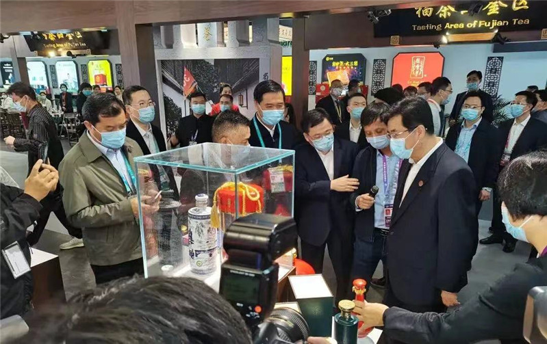 进博会期间,福建省省委副书记、代省长赵龙,福建省委常委、副省长郭宁宁,省商务厅厅长吴南翔,南平市市委副书记、市长袁超洪,建瓯市市委书记周靖,建瓯市市委常委、统战部部长周建芳,建瓯市副市长叶莉等领导相继莅临到福酒展示厅巡视。赵龙代省长对以福矛窖酒为代表的福酒产业近几年发展表示赞赏,并鼓励企业聚力突破,再创辉煌。