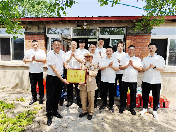 中经总网辽宁讯:抗美援朝精神永存,革命前辈不容忘记。6月2日上午,北方国防教育网文体联盟一行人员在七一前夕,再次来到沈阳市辽中区大黑岗子镇马家岗子村,为中国人民志愿军老战士侯宝山授牌,送去慰问品,对老前辈为革命事业做出的突出贡献表达崇高的敬意。