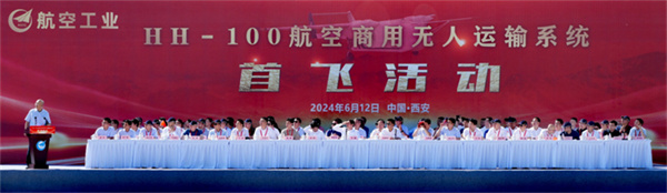 9时16分,HH-100从西安蓝田通用机场滑行起飞。飞行试验过程中,飞机各系统设备工作正常,飞机姿态平稳,状态保持良好,完成了预定飞行科目。9时25分,HH-100平稳着陆,首飞圆满成功。HH-100航空商用无人运输系统是中国航空工业集团贯彻落实习近平总书记对航空工业系列重要指示批示精神,积极响应党中央、国务院关于打造低空经济战略性新兴产业的重大决策部署要求,主动布局无人机产业、加快形成新质生产力,依托“新舟”系列飞机研制所构建的完善的研制体系、生产保证体系、持续改进运营支持体系,以吨级商载的无人货运系统进入无人运输领域的切入性产品。