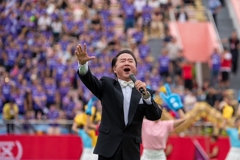 比赛开场前,歌唱家陈小涛隆重推出专为川超联赛创作的新歌《南哥,冲冲冲》,该歌曲由南充文旅部门组织作家素罗衣、作曲家杨健创作,特邀陈小涛演唱。歌曲极具感染力的rap段落"哦嘞哦嘞哦嘞"朗朗上口,瞬间点燃全场热情。在陈小涛的带动下,现场上万名观众齐声合唱,形成震撼人心的声浪,将比赛开幕现场推向首个高潮。这首新歌以其动感的节奏和积极向上的主题,完美契合体育赛事氛围,成为本届川超联赛的一大亮点。