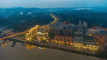 碧水湾项目,坐落于藤县,项目地理位置十分优越,依山面水、坐北向南占尽江景资源。碧水湾项目占地面积272亩,拟建有普通商住洋房、星级酒店、江景别墅及相关配套商业体的超大型综合开发项目。碧水湾总建筑面积约50万平方米。已开发交付有一期洋房414户,在建工程有一期别墅区主体已完成95%,二期洋房主体已完成75%,未开发土地约150亩。
