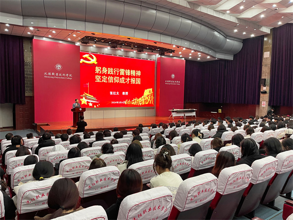 中经总网报道:为大力弘扬雷锋精神,激励引导青年学生做中华民族传统美德的传承者、社会主义道德规范的实践者、良好社会风尚的创造者、新时代“六地”目标的奋斗者,3月4日,沈阳职业技术学院工商管理学院春季“开学第一课”,邀请沈阳城市学院教授、沈阳军旅书画研究会会长、辽宁大学硕士研究生导师张红太作赓续雷锋精神专题讲座《躬身践行雷锋精神  坚定信仰成才报国》,沈阳职业技术学院工商管理学院师生300余人聆听讲座。