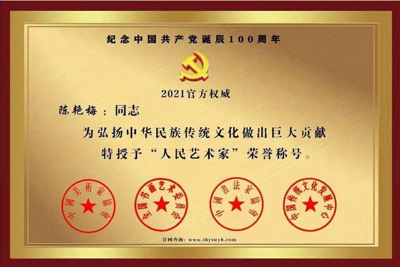 2021年荣获中国美协、中国书协等单位授予的“人民艺术家”荣誉称号