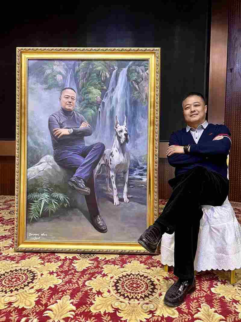 据陈艳梅介绍,画油画肖像,前期工作层续非常复杂。首先要定做油画内框,选择质量好的适合画人物画的油画布,绷紧钉在油画框上,还要在油画布上刷二遍底层油,等待干后,才能起稿;还要购买进口油画颜料和上光油、油画笔等。同时要根据画面的设计,以人物为主、背景和动物为附,画面环境要统一,前后要有透视关系。画人物要有精、气、神,还得像本人,所以难度特别大。一边画,一边还要多次前、后观,照型要准确。而且每画一遍,等待油干了,才能画第二遍。因为是工笔写实油画肖像、所以非常费功夫。由于画面比较大、将近二个月左右时间才能完成,而且选择的背景和动物都和画中的人物,必须是相互有默契配合的,这其实是创作了一幅很有思想、很有灵魂、很有创新的艺术品,不是普通的油画肖像,挂在家里大厅,和法国巴黎卢浮宫里的油画作品一样百年不会变色!
