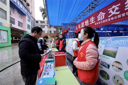图:“世界湿地日”有奖答题。 谭玉林供图