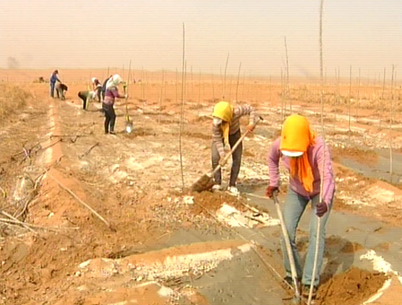 为确保林纸一体化速生林科学合理开发,项目倡导者、组织者、实施者,美利纸业公司掌门人刘崇喜身感责任神圣而重大。他亲率专家和技术业务骨干挺进大漠安营扎寨,充分运用地学、农学、林学、水力学理论,探查勘测、打桩订线,很快制定出了“工程措施、生物措施、技术措施综合运用和沟、渠、路、林综合开发”的实施方案。2001年林纸一体化速生林项目在改革开放和西部大开发的浪潮中破沙启动,一个声势浩大、平沙造田、兴修水利、植树造林的大会战拉开帷幕。率先开进大漠腹地的是纸业公司的全体机关干部、车间负责人和倒班调休的数千名职工。