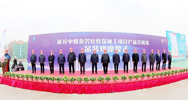 “产品分离塔堪称‘大国重器’,其高度相当于3架波音737-800飞机的长度,重量则是30多架波音737-800飞机的空重。”延长中燃化学有限公司总经理李达称。