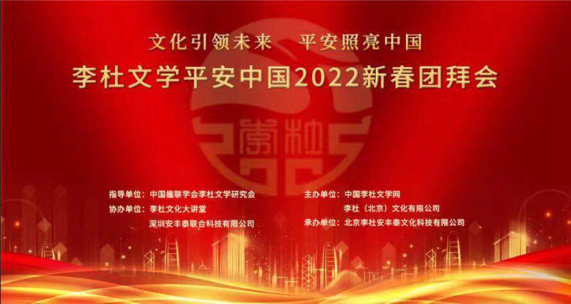 【本网讯】1月24日,由中国楹联学会李杜文学研究会指导,中国李杜文学网、李杜(北京)文化有限公司主办,李杜文化大讲堂、深圳安丰泰联合科技有限公司协办,北京李杜安丰泰文化科技有限公司承办的“文化引领未来 平安照亮中国”李杜文学平安中国2022新春团拜会在北京举行。