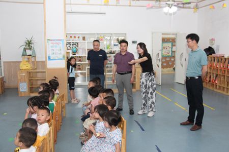 图/衡阳县卫健局党组成员、副局长傅同生(右三)带队,多次对托育机构提质改造进行现场指导