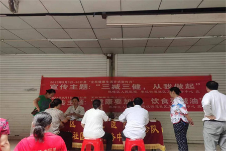 中经总网·中经在线湖南衡阳讯(张星兴 许杰 戴丽)为深入推进实施以“三减三健”(减盐、减油、减糖,健康口腔、健康体重、健康骨骼)为主题的全民健康生活方式行动,进一步传播和普及健康知识,营造良好社会氛围,湖南省衡阳市珠晖区粤汉街道社区卫生服务中心定于 2023 年9月1日至30日在本社区开展了一系列“三减三健 从我做起”宣传、义诊活动。