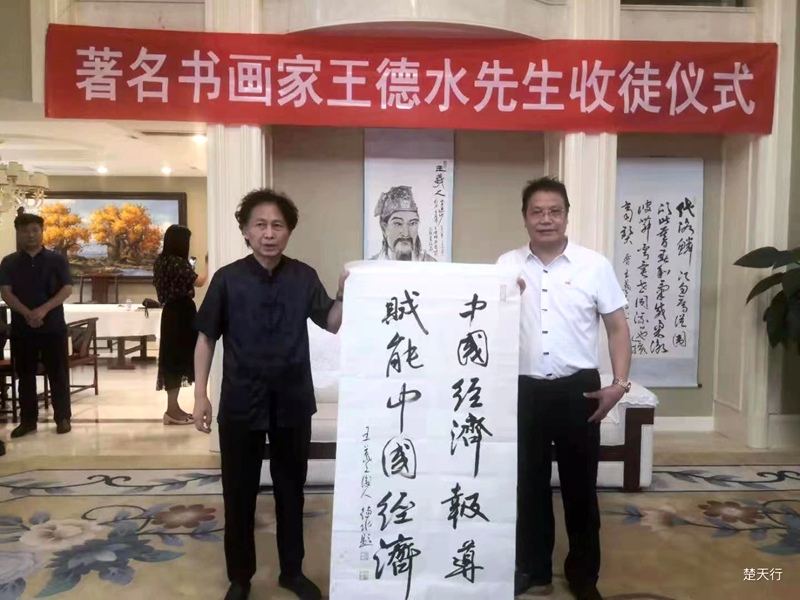 中国经济报道8月18日讯(熊辉)致力于弘扬中华传统文化,坚守艺术为人民服务,用书画艺术报效祖国。8月15日,著名书画家王德水先生收徒仪式在北京举行。在仪式活动中,王德水先生欣然提笔,向应邀出席活动的中国经济报道执行总裁、北京各省市驻京机构商务协会副会长熊辉赠送了书法作品:“中国经济报道,赋能中国经济”。王德水表示,我愿意把自己的毕生所学,传授给更多的弟子,为中华文化的传承和发扬尽一份力。