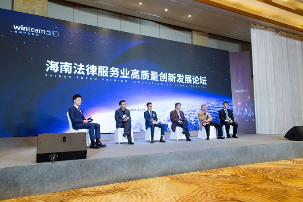 在会议下半场,张晓辉会长、曾渝院长、邓和军副院长、林宁波副院长和董冬冬主任参与了圆桌对话环节,就海南自贸港法律服务业的发展创新等话题展开深入讨论。