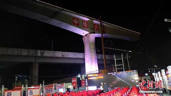 新建福厦铁路漳州下行联络线跨越杭深铁路转体桥施工现场。 杨伏山 摄