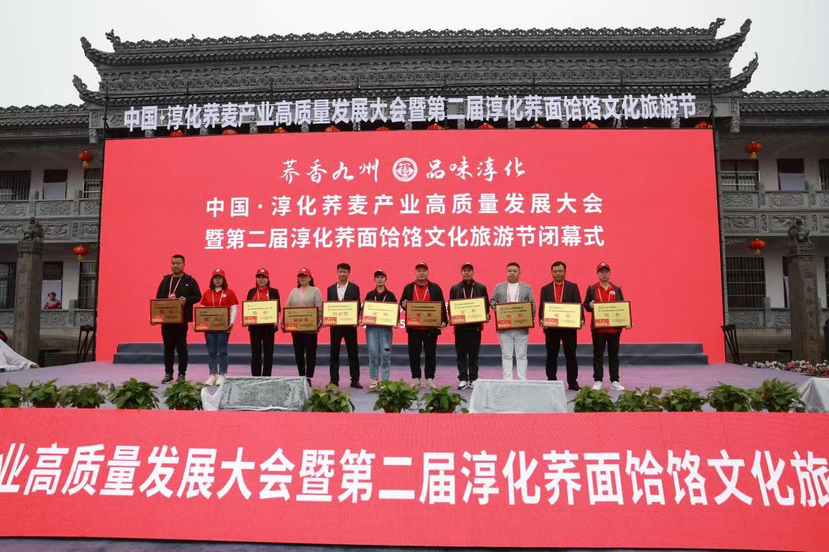 闭幕式上,郭立志、雷党社、张乔、冯社等县级领导分别为荞面饸饹制作技艺比赛获奖团体及个人颁奖;县委常委杨博、曹博共同为“淳化县荞麦产业协会”揭牌;副县长左解放宣读了获奖单位和个人名单;县人大常委会副主任强俊和为淳化荞面饸饹形象LOGO征集大赛一等奖获奖者颁奖。