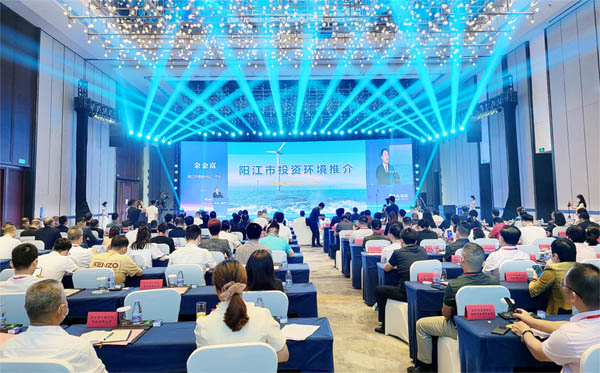 广东省商务厅副厅长陈越华在致辞介绍了广东经济所取得的成就,指明了阳江在广东经济发展战略中的重要位置及蕴藏的战略机遇。 2021年,广东GDP约为1.92万亿美元广东,是全国唯一的12万亿级大省,这一经济体量超越世界上90%以上的国家,与加拿大、俄罗斯、韩国等相当,远超西班牙、澳大利亚、荷兰等国。广东经济自1989年坐上全国第一宝座后,至今没有被超越。广东经济的奇迹是粤港澳大湾区创新发展与粤东西北协调联动的辉煌成果,越华副厅长表示, “粤协调粤美好”,在广东新一轮改革战略和高质量发展要求下,省委、省政府提出构建“一核一带一区”的区域发展格局,阳江将成为广东沿海经济带的重要战略支点城市。随着江湛铁路、港珠澳大桥、南沙大桥等重要交通基础设施的建成,阳江与广州、深圳、香港、澳门等大湾区核心城市的距离进一步拉近,阳江的海洋优势、区位优势、生态优势、腹地优势更加突显。阳江沿海产业经过不断地打造发展,目前具备海上风电产业集聚优势,新钢铁、滨海旅游、海洋渔业等产业发展势头良好。另外,随着大湾区的产业流、资金流、信息流、人流、物流沿着沿海经济带向阳江汇聚,阳江将在承接珠三角乃至大湾区优质生产力转移、发展高端沿海临港工业、构建现代产业体系、建设高品质宜居城市、提高发展平衡性和协调性等方面迎来重大发展机遇。大湾区建设将与广东省沿海经济带建设形成叠加效应,为阳江高质量发展赋能。