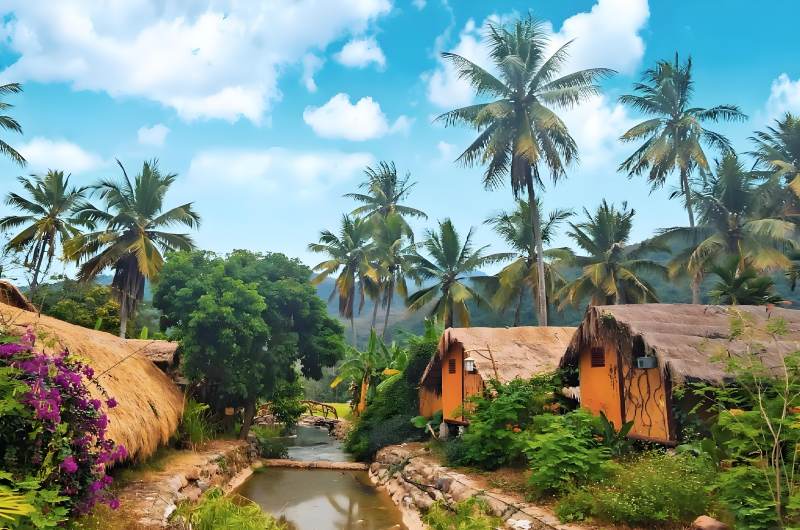 这里的船型屋作为黎族传统民居的杰出代表,其建筑智慧集中体现了“道法自然”的哲学思想。船屋整体以竹木为骨、茅草为衣,就地取材而不毁山林,其弧形屋顶设计能有效抵御台风侵袭,在风速达12级时可降低30%冲击力,茅草墙体具备天然隔热性能,使室内温度常年保持在28℃左右,这种建筑中蕴含着的生态智慧,既是海南人民适应热带气候的创造性实践,也与绿色生态型民居“低能耗、高适应性”的核心原则高度契合。